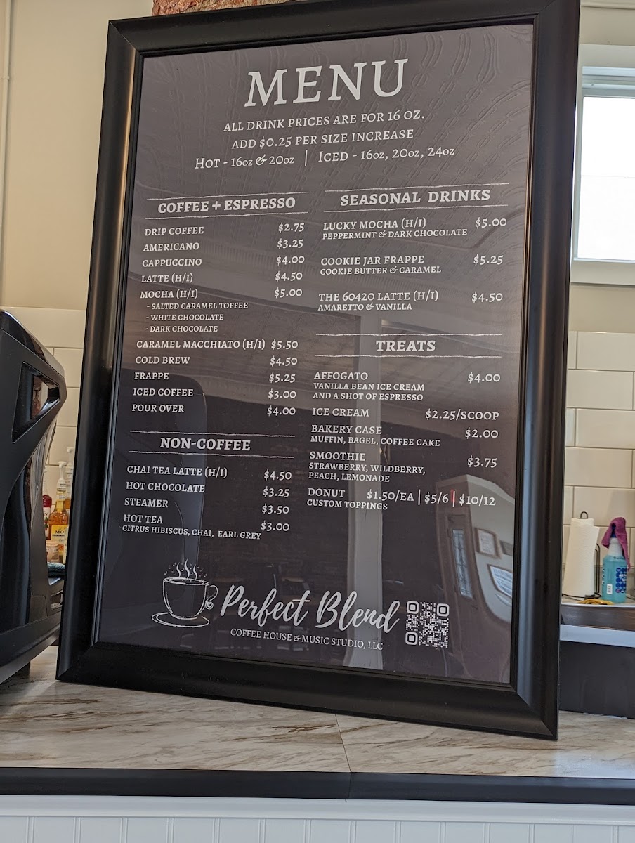 Perfect Blend Coffee House & Music Studio, LLC Menu